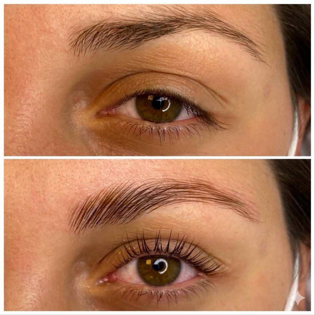 (Réhaussement sourcils + soin botox kératine + teinture)